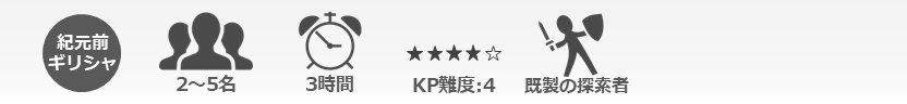 シナリオの構造自体は難しくないが、キーパーにはギリシャに対する知識が必要になり、それをバランスよくプレイヤーに伝える必要がある。